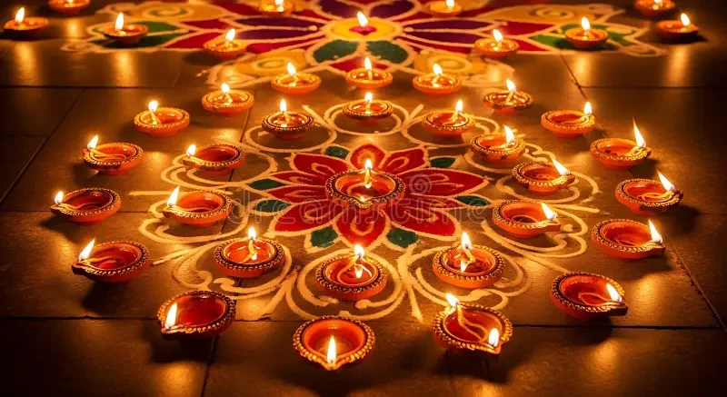 lamps (deepa) that Indians light outside their homes to symbolize the inner light that protects from spiritual darkness.